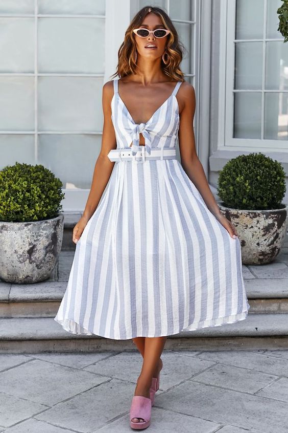 If you're after a more subdued Fourth of July look, try bringing the iconic hues together using funky accessories. Pair a simple nautical stripe top with pristine white jeans and red block heels. Another option is combining a navy and white geo printed dress with white sunglasses and a classic red lip! All looks are patriotic enough for Independence Day but cool and breezy for the hot July month.